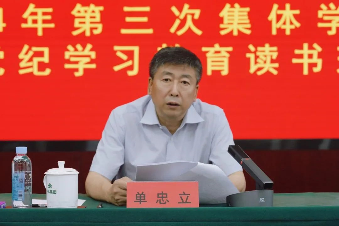 单忠立指出,在全党开展党纪学习教育,是以习近平同志为核心的党中央作出的重大决策部署,是加强党的纪律建设、推动全面从严治党向纵深发展的重要举措。要提高政治站位,集中精力认真学习,联系实际深入研讨,带头示范端正学风,要深刻认识开展党纪学习教育的重大意义,深入学习领会习近平总书记关于加强党的纪律建设的重要论述,深刻把握“六项纪律”的丰富内涵和实践要求,以高度的政治自觉推动学习教育走深走实,坚决把思想和行动统一到党中央关于纪律教育的部署要求上来,切实做到学纪、知纪、明纪、守纪,以严明的纪律确保同以习近平同志为核心的党中央保持高度一致,统一思想、统一行动,知行知止、令行禁止,为全力打造风清气正、实干担当的中林新生态提供坚强政治和纪律保障。