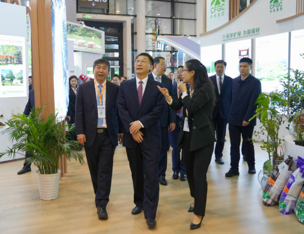 开幕式当天,中林集团党委副书记、总经理单忠立陪同广西壮族自治区党委书记、自治区人大常委会主任刘宁,国家林业和草原局局长关志鸥等共同参观中林集团展厅,并详细介绍中林集团在建设国家储备林、科学扩绿与生态修复、落实“双碳”目标、助力乡村振兴、生态产品价值实现和践行两山理论等领域的经验成果与亮点特色。