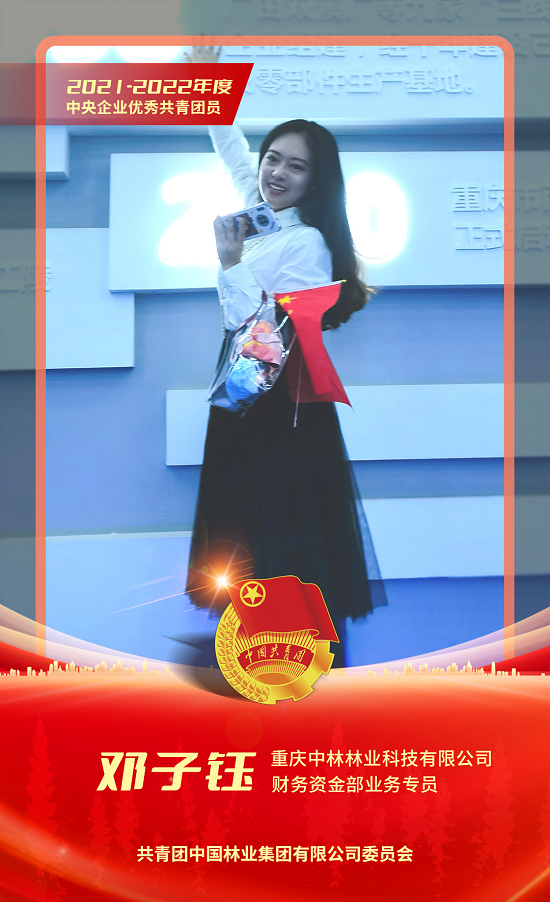 邓子钰同志现任重庆中林林业科技有限公司财务资金部业务专员,该同志主动担当作为,梳理公司账务,并学习了解业务情况,配合推进财务管理前置化,为加强公司风险管控作出了重要贡献;为规范公司内部报销管理流程,邓子钰利用个人时间将相关制度流程进行梳理,形成课件并对公司员工进行培训。该同志主动向党组织靠拢,积极参加公司党组织的各项活动,在庆祝建党100周年“学党史、颂党恩、跟党走”主题演讲比赛中荣获二等奖,在“党史知识分享”征图比赛中获一等奖,积极参与捐书活动和防疫志愿活动,用实际行动践行“永远跟党走”的诺言。