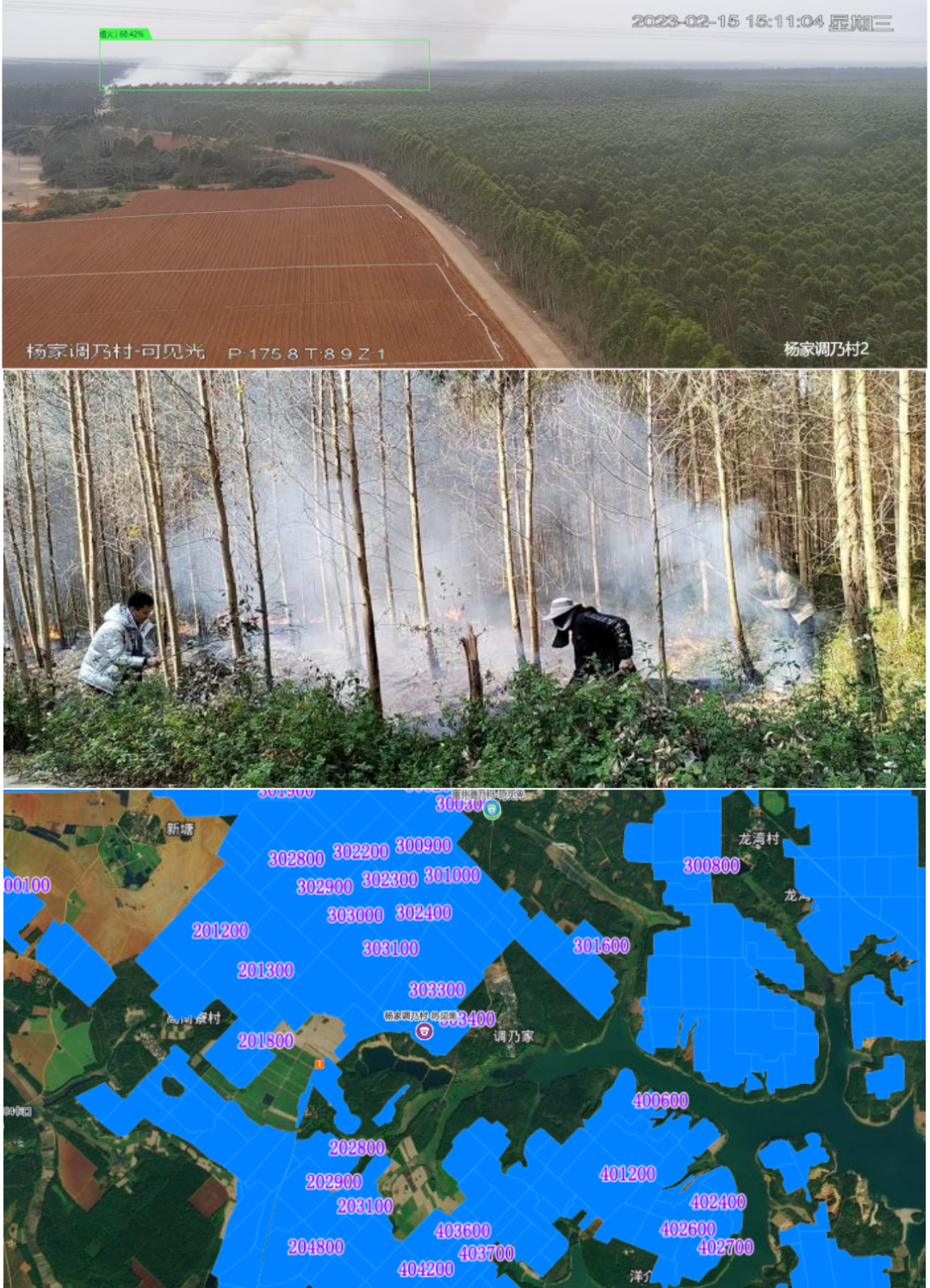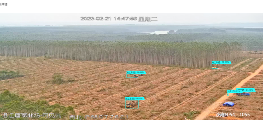2023年2月15日,唐家林场分公司一林队发生火灾,监控预警子系统第一时间通过火灾烟雾进行识别,精准定位火点位置。监管人员迅速获得反馈信息,火灾得以及时有效处置,减轻林木资源经济损失。