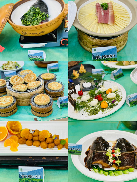 设在集团食堂的品鉴活动现场洋溢着幸福祥和的氛围,来自集团公司旗下的北京千岛湖鱼味馆、歙县披云山庄有限公司、晏徽宴(北京)餐饮管理有限公司、浙江千岛湖鱼味馆有限公司、黄山市华山徽宴酒店文化有限公司五个“身怀绝技”的厨师团队为大家呈现了一道道用“中林好食材”精心准备的珍馐佳肴。