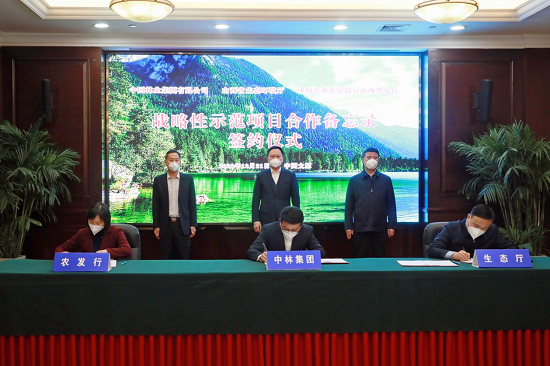 中林集团还与山西省生态环境厅、中国农业发展银行山西省分行在山西太原签订了战略性示范项目合作备忘录。未来,三方将共同携手积极探索山西生态建设、产业发展、林业金融创新等新方法,推进国家储备林建设、国家生态文明建设示范区创建和“两山”基地建设等重点工作,为山西省黄河流域生态保护和高质量发展与乡村振兴战略提供强力支撑。