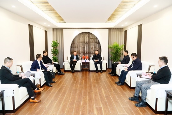 11月30日,中林集团党委书记、董事长余红辉在杭州会见来访的衢州市人大常委会副主任、常山县委书记潘晓辉一行。
