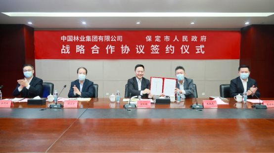 11月1日,中国林业集团有限公司与保定市人民政府通过视频方式签署战略合作协议。中林集团党委书记、董事长余红辉,保定市委书记党晓龙出席并见证签约。保定市委副书记、市长闫继红主持活动仪式,市委副书记商黎兵介绍双方合作进展情况。中林集团党委委员、副总经理朱成庆与保定市政府党组成员王月衡分别代表双方签署协议。