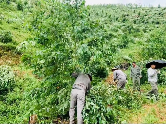 为确保工作正常开展,他趟河水、钻密林,在山高路远没有手机信号的林地,一待就是一整天。检查、砍草、除萌、挖肥料坑、检查工棚防火安全,身体力行,事无巨细。