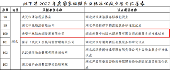 中林集团赤壁陆水湖项目入选“2022年国家级旅游服务标准化试点”