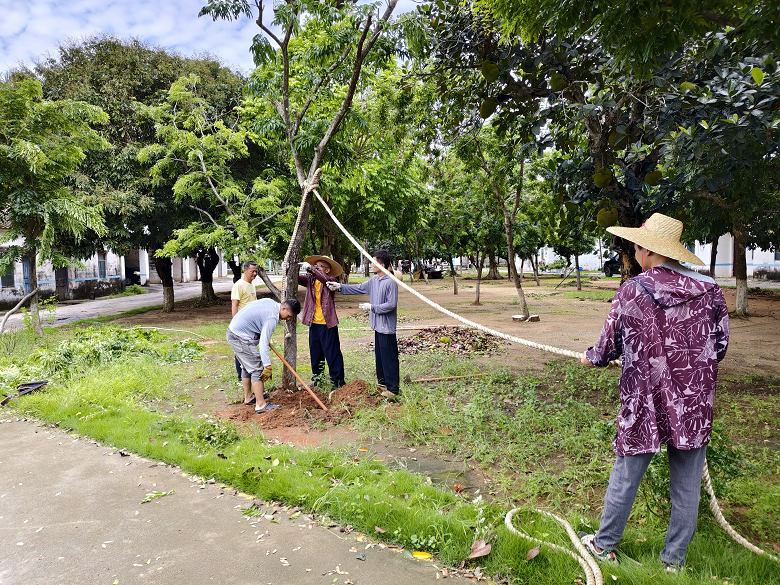 机关员工主动承担起机关场部的清理整治任务。分组对办公区、生活区倒伏树木进行扶正加固,集中清理折断枝干及落叶垃圾。经过不懈努力,场部环境卫生全面恢复,为救灾指挥调度与后勤保障提供稳定基础。