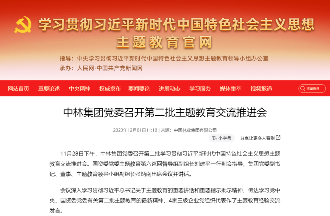 赞!中央主题教育官网、“学习强国”连续刊发中林集团主题教育成果成效2023-12-14