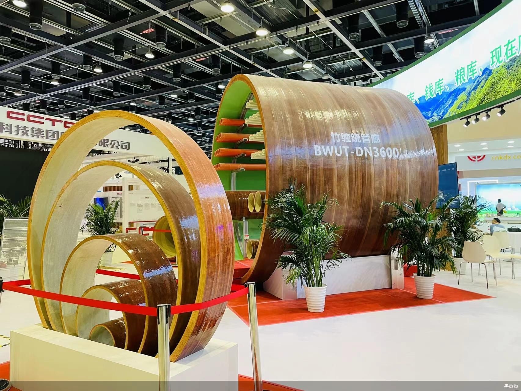 8月31日至9月5日,以“服务合作促发展绿色创新迎未来”为主题的2022年中国国际服务贸易交易会在京举办。在中国林业集团的展台上,看似脆弱的不同孔径大小的竹缠绕管廊竟能成为使用寿命超过50年的地下管廊