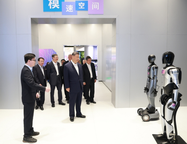“模速空间”是上海市打造的人工智能大模型专业孵化和加速平台,已入驻企业100余家。习近平来到这里,通过视频短片了解上海市人工智能产业发展情况,察看重点孵化企业的大模型产品展示,听取相关技术研发和企业生产经营介绍。习近平对上海积极发展人工智能取得的实效给予肯定。他指出,人工智能技术加速迭代,正迎来爆发式发展,上海要总结好以大模型产业生态体系孵化人工智能产业等成功经验,加大探索力度,力争在人工智能发展和治理各方面走在前列,产生示范效应。