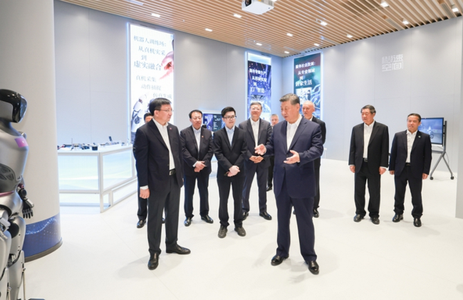 29日上午,习近平在中共中央政治局委员、上海市委书记陈吉宁和市长龚正陪同下,来到位于徐汇区的上海“模速空间”大模型创新生态社区调研。