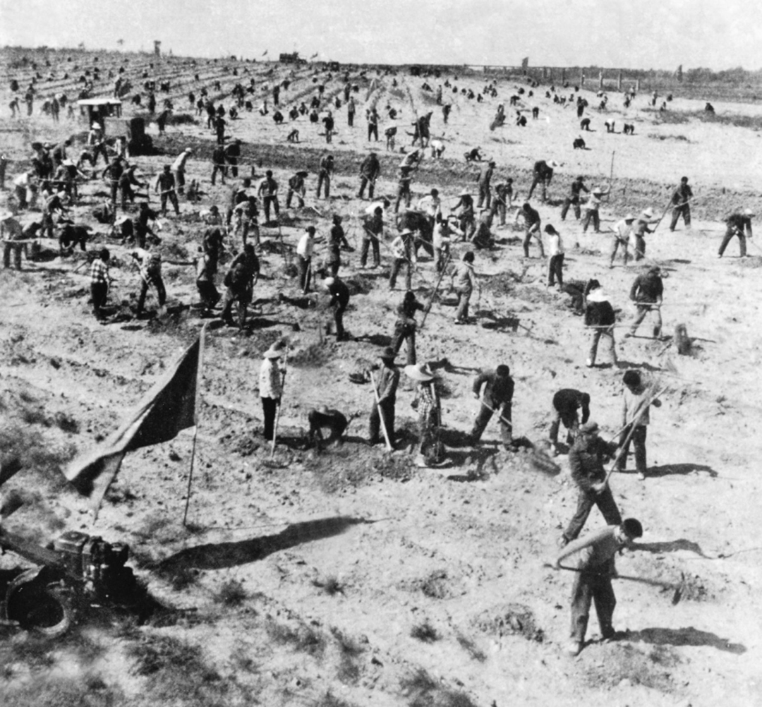 老一辈雷林人搭建茅棚,扎营荒山野岭植树造林。(1955年摄)