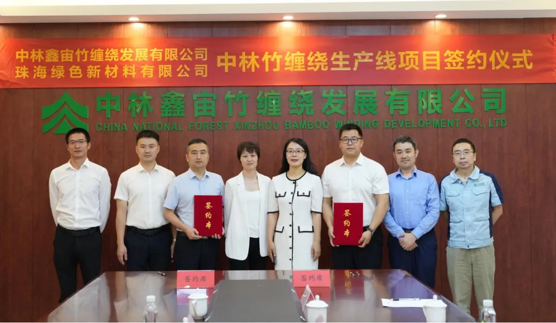 5月15日上午,中林集团所属中林鑫宙竹缠绕发展有限公司在浙江杭州与珠海绿色新材料有限公司举行中林竹缠绕生产线项目签约仪式。本次签约是中林竹缠绕产业发展历程中的重要里程碑事件,标志着中林新一代竹缠绕复合管道生产设备技术从研发构想走向生产一线。