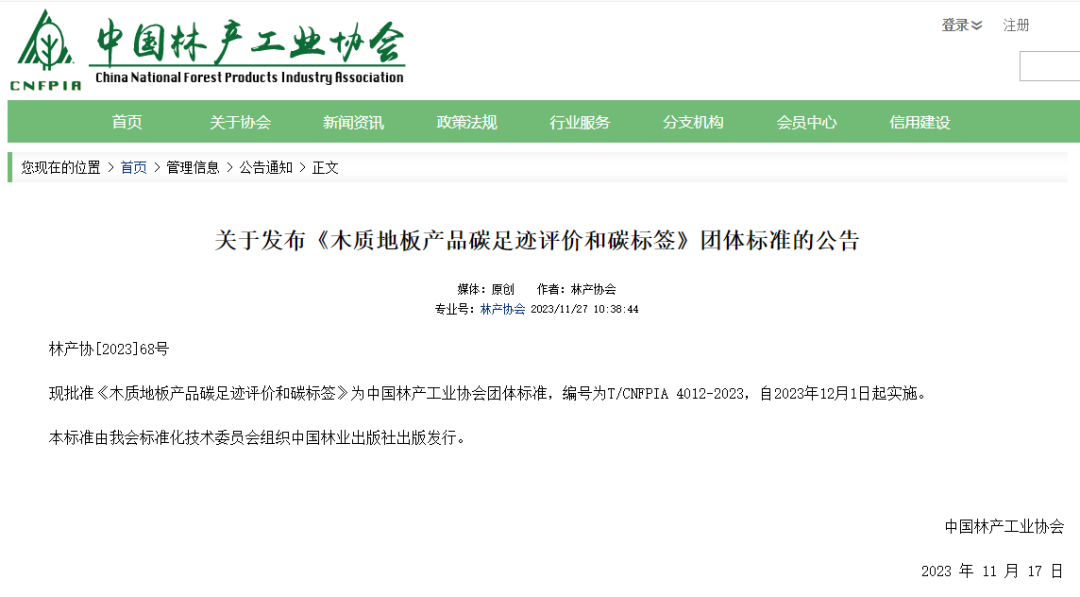 截至目前,已完成中国林产工业协会发起的《木质地板产品碳足迹评价和碳标签(T/CNFPIA 4012-2023)》《木材与木质制品碳储量计算方法(T/CNFPIA 2003-2023)》,以及上海环交所发起的《企业碳中和实施通则(T/CAS 799-2023)》《产品碳中和实施通则(T/CAS 800-2023)》共4项团体标准的编制与发布。