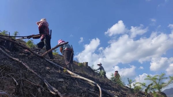 相较于传统的“段木窖栽”种植方式,松树蔸接种茯苓可以有效节约松木、增产提质,不仅能够起到变废为宝的效果,还能加快松树根部的腐烂速度,改善周围生态环境,为周围树种创造良好的成长环境和生存空间。同时,通过建立“央企+基地+农户”的合作模式,由农户接种、管护,达到成熟标准后,公司再统一采收销售。眼下茯苓种植基地迎来了集中采收期,采收下来的茯苓个头大、产量高、品质优,带动周边林农劳务用工3500余次,人均增收约2000元,真正实现不砍树,也能富的绿色发展之路。