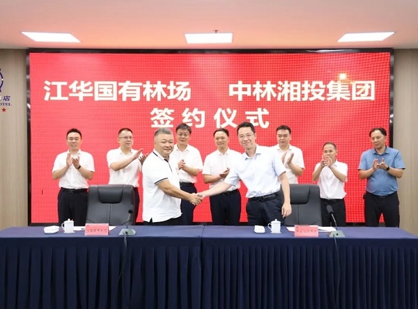 7月28日,中林(湖南)林业投资开发集团有限公司(以下简称“中林湘投”)与江华国有林场签署《国有林权合作意向协议》,永州市副市长肖扬出席仪式,中林集团森林资源管理部部长、中林湘投党委书记、执行董事王鹏朝,江华县县委副书记、县长吴军臣出席签约仪式。中林湘投副总经理李敖彬,江华国有林场党委书记金锦云分别代表双方签订协议,永州市林业局党组书记、局长雷安术出席仪式,永州市林业局一级调研员王利民主持签约仪式。