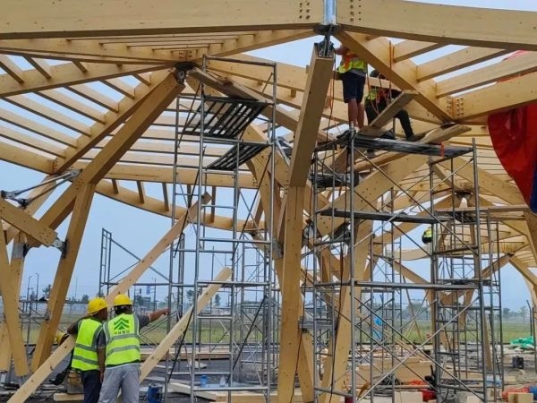 今年以来,中林木结构各大项目全面开工建设,镇江中林公司全体员工上下一心,以“拉满弓”的高昂精神状态抢进度、保工期。节假日期间依旧坚守一线,全身心投入到项目建设中。