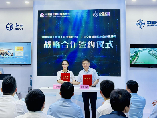 央企携手聚合力,互惠共赢谋“双碳”。近日,在首届上海国际碳中和技术、产品与成果博览会期间,中林集团旗下子公司中林绿碳公司与上海交通建设总承包有限公司签署“战略合作协议书”。双方将携手共同开发绿色新科技、新材料、新能源,推动交通基础设施绿色升级,共同助力国家“双碳”事业发展。