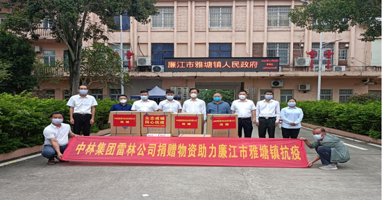 雷林公司向廉江市雅塘镇捐赠口罩、手套、消毒液及矿泉水等急需物资一批,助力当地镇村群众开展新冠肺炎疫情防控工作。