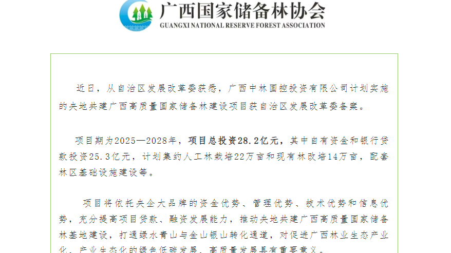 聚焦实体主业,谋划现代化产业布局。中林广西公司立足中国林业集团“林业国家队”,围绕纸浆、板材和木竹新材料等产业,深入开展前瞻性调查研究,高质量撰写调研报告,为编制“十五五”规划和推进产业控制功能奠定基础。同步深化多边合作共建,与三峡集团广西分公司、中林数科公司、广西大学林学院等单位达成战略合作意向,系统推进“林业+新能源”、林业数字化平台建设、国储林种苗选育等方面研究,持续探索国储林高质量发展突破口。