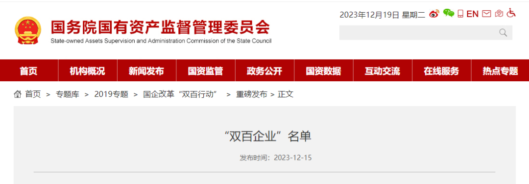 又双叒!中林集团这家单位上榜国务院国资委“双百企业”名单2023-12-20