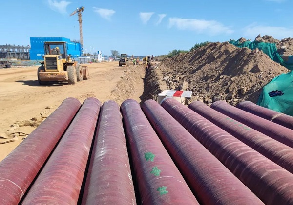 近日,中林集团所属中林鑫宙公司指导生产的DN600竹缠绕复合管道在山东省烟台市芝罘区芝罘湾一期市政工程建设中正式开始敷设。烟台市芝罘区芝罘湾一期市政工程作为烟台蓝天集团海上世界片区的首开项目,以支撑和