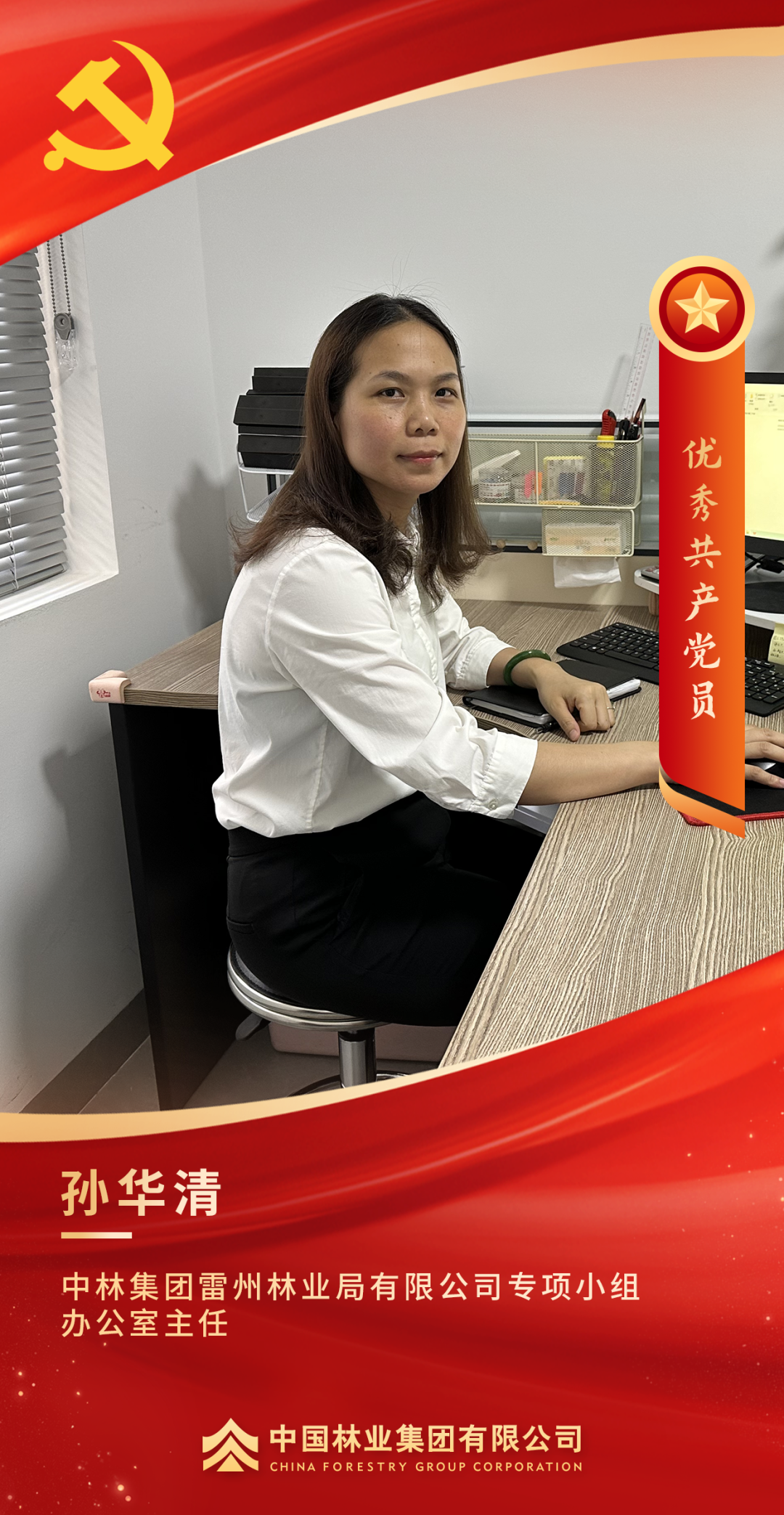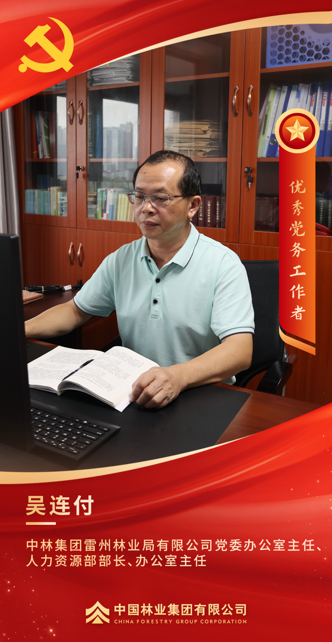 荣获集团党委“优秀党务工作者”的称号,我内心充满喜悦,也满怀感恩之情。守林护林工作不仅仅是植树造林、防火防虫那么简单,它更是一份沉甸甸的生态责任和社会担当。作为党员干部,我要将“绿水青山就是金山银山”的理念深植于心、外化于行,让党旗在林场这片绿色林海高高飘扬,引领生态保护和企业可持续发展。