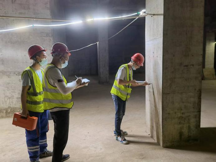 在成都青白江铁路港木材物流基地建设项目施工现场,林场集团所属成都市中林投资发展有限公司蒋福生、林勇、张亮正不舍昼夜对项目实体建筑进行监测,确保项目进度有序推进。