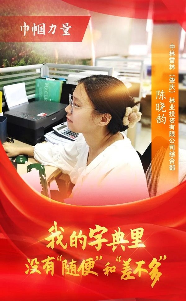 陈晓韵常怀敬畏之心,认真做好本职工作,时常一通电话,她就从宿舍奔回办公室,查找数据,处理资料。认真细心负责的她,对未完成的工作总是放心不下,在她的字典里没有“随便”和“差不多”这样的词语,只有“更好”、“更准确”、“更完美”。在她看来,正在脚踏实地做好每一件事情,在平凡的工作岗位上散发自己的光和热。