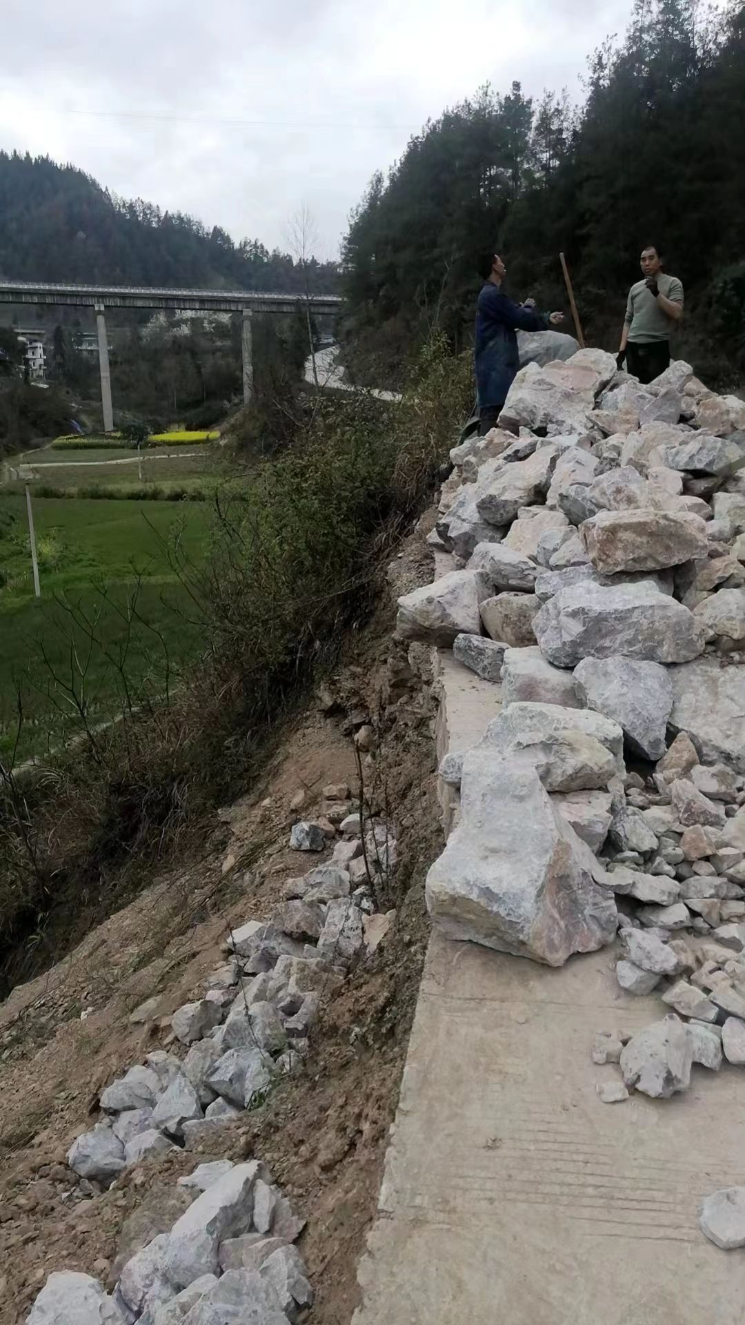 暴雨过后,造成酉州林开公司改培油茶试点项目酉阳县三标段已建5.5公里集材道损毁严重及其运输主干道路出现不同程度塌方。