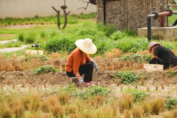 生态修复 科研先行 林场集团所属中林生态环境科技有限公司一线员工在生态科研基地种质资源圃移栽苔草秧苗。栽植后,科研人员将持续观察苔草习性并记录其生长表现,为应用到生态修复项目中做好准备。(摄影:张旭)