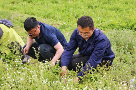 生态修复 人人有责 在林场集团所属中林生态环境科技有限公司种质资源圃,一线员工在划定区域内,蹲下身子、拾起工具,仔细清除枯枝、杂草,实施由公司确定的“全员种植计划”,为植物正常生长提供良好生境。(摄影: 张旭)
