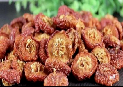 海红果冻果干与海红果干不同之处在于冻果干复水性好,能最大限度的保存海红果营养。冻海红果干可直接食用,口感酥脆,也可以泡水吃,仍有海红果的甜酸及香味,是一款美味的休闲食品。