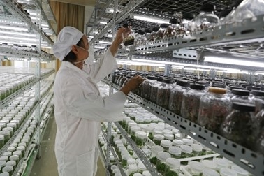 国庆假期,永安林业种苗中心组培车间技术员挑选接种母瓶。