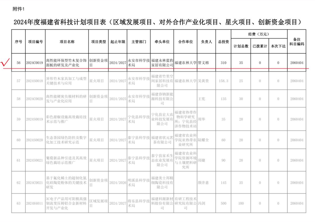 近日,福建省科学技术厅下达2024年度区域发展项目等省科技计划和经费的通知,中林集团所属永安林业正在筹划实施的《高性能环保型竹木复合饰面板的研发及产业化》获创新资金项目类立项。