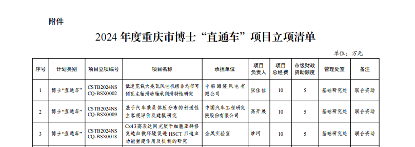 唯一林业行业项目!重庆林投公司入选2024年重庆市博士“直通车”项目立项名单2024-07-03