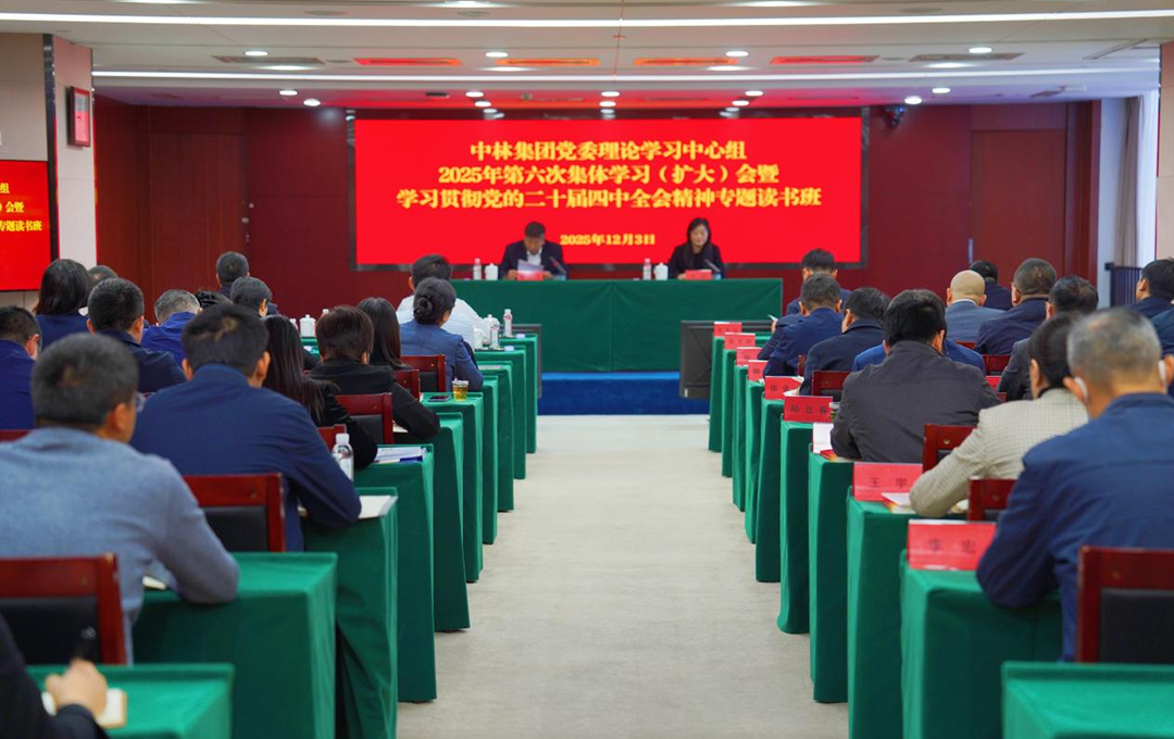 12月3日,中国林业集团举行党委理论学习中心组2025年第六次集体学习(扩大)会暨学习贯彻党的二十届四中全会精神专题读书班,认真学习贯彻落实党的二十届四中全会精神,进一步深入学习习近平生态文明思想,深