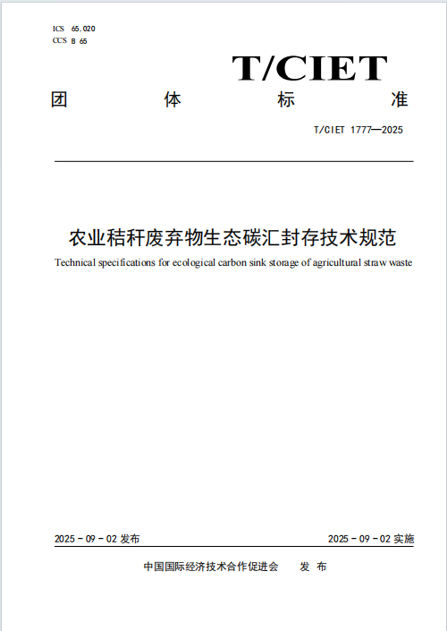 近日,由中林数科有限公司等多家单位共同参与起草的《农业秸秆废弃物生态碳汇封存技术规范》(标准编号:T/CIET-1088-2025)团体标准正式发布并开始实施。该标准作为国内首部聚焦农业秸秆废弃物生态碳汇封存领域的系统性技术规范,填补了行业空白,对推动农业废弃物资源化利用、提升生态系统碳汇能力具有重要意义。