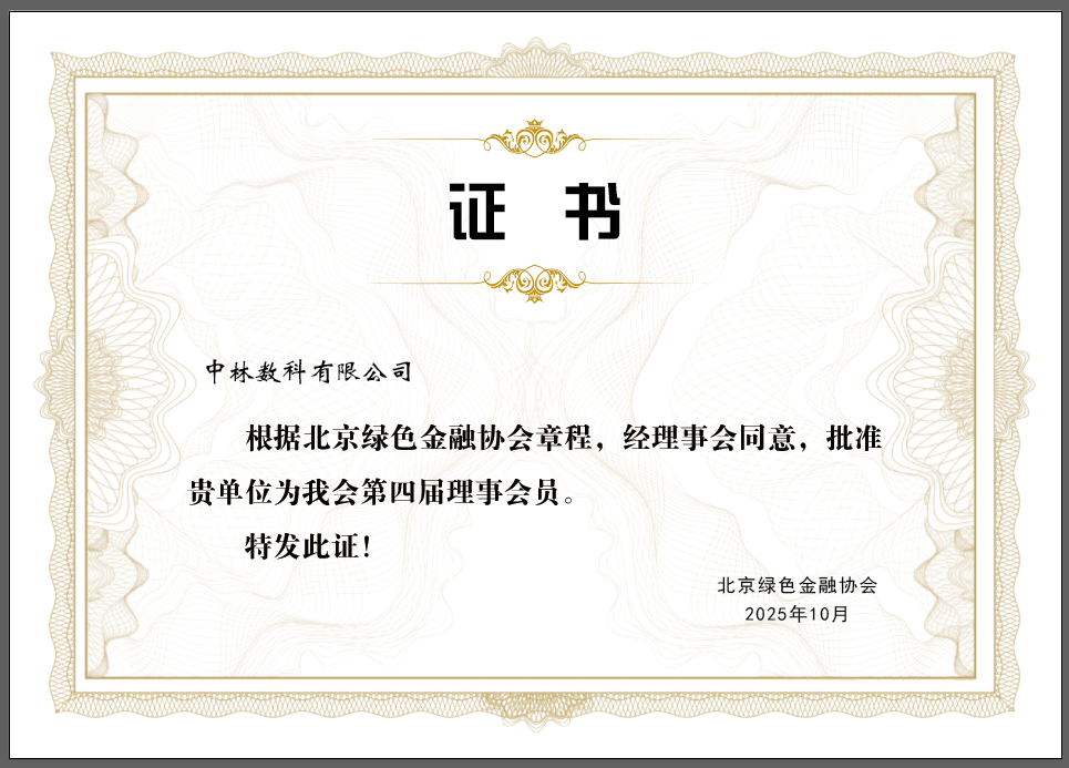 近日,中林数科有限公司(以下简称“中林数科”)正式加入北京绿色金融协会,并成功获批成为理事单位。这一重要里程碑标志着中林数科在深度融入绿色金融生态、服务国家“双碳”战略方面迈出了坚实的一步。
