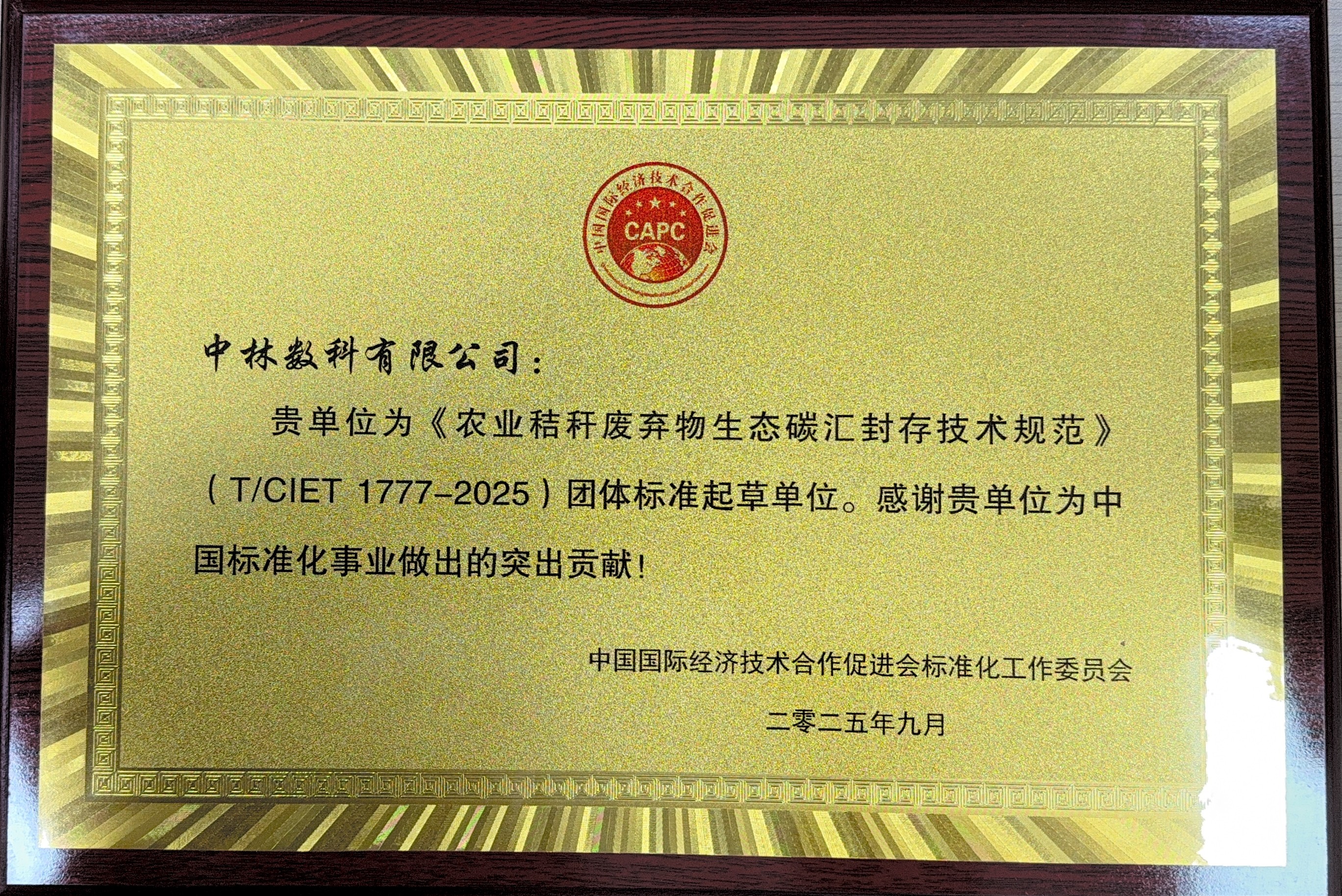近日,由中林数科有限公司等多家单位共同参与起草的《农业秸秆废弃物生态碳汇封存技术规范》(标准编号:T/CIET-1088-2025)团体标准正式发布并开始实施。该标准作为国内首部聚焦农业秸秆废弃物生态